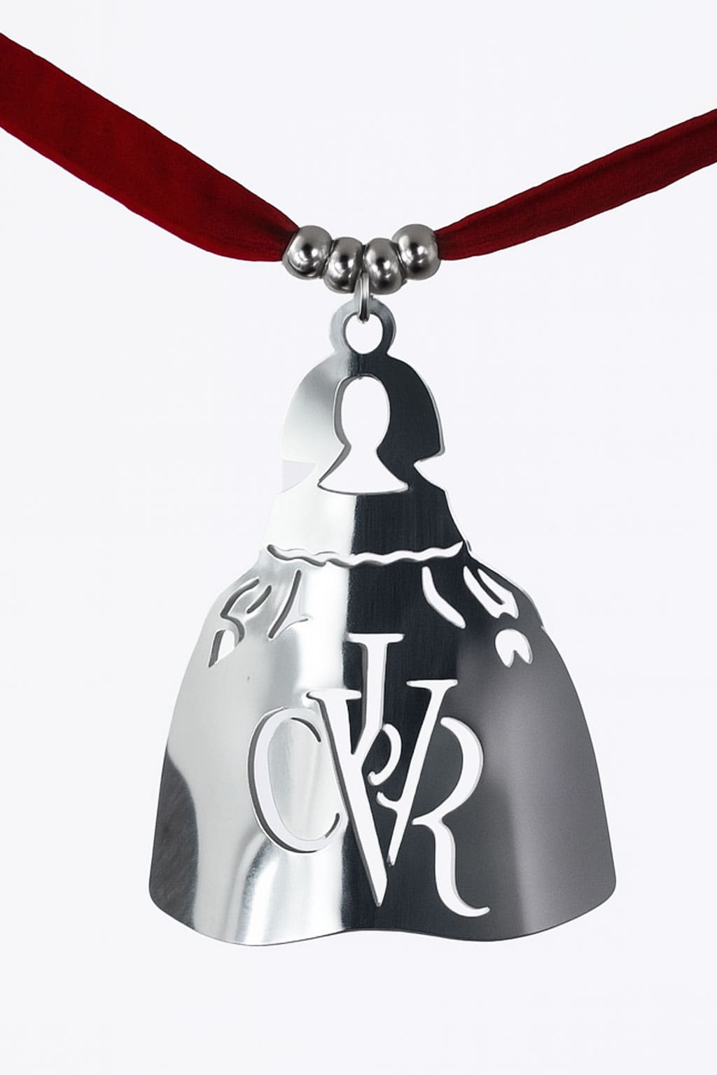 Colgante Menina Vítor en acero inoxidable quirúrgico 316, con símbolo calado del vítor universitario. Diseño exclusivo y cordón de seda ajustable. Hecho en Salamanca.
